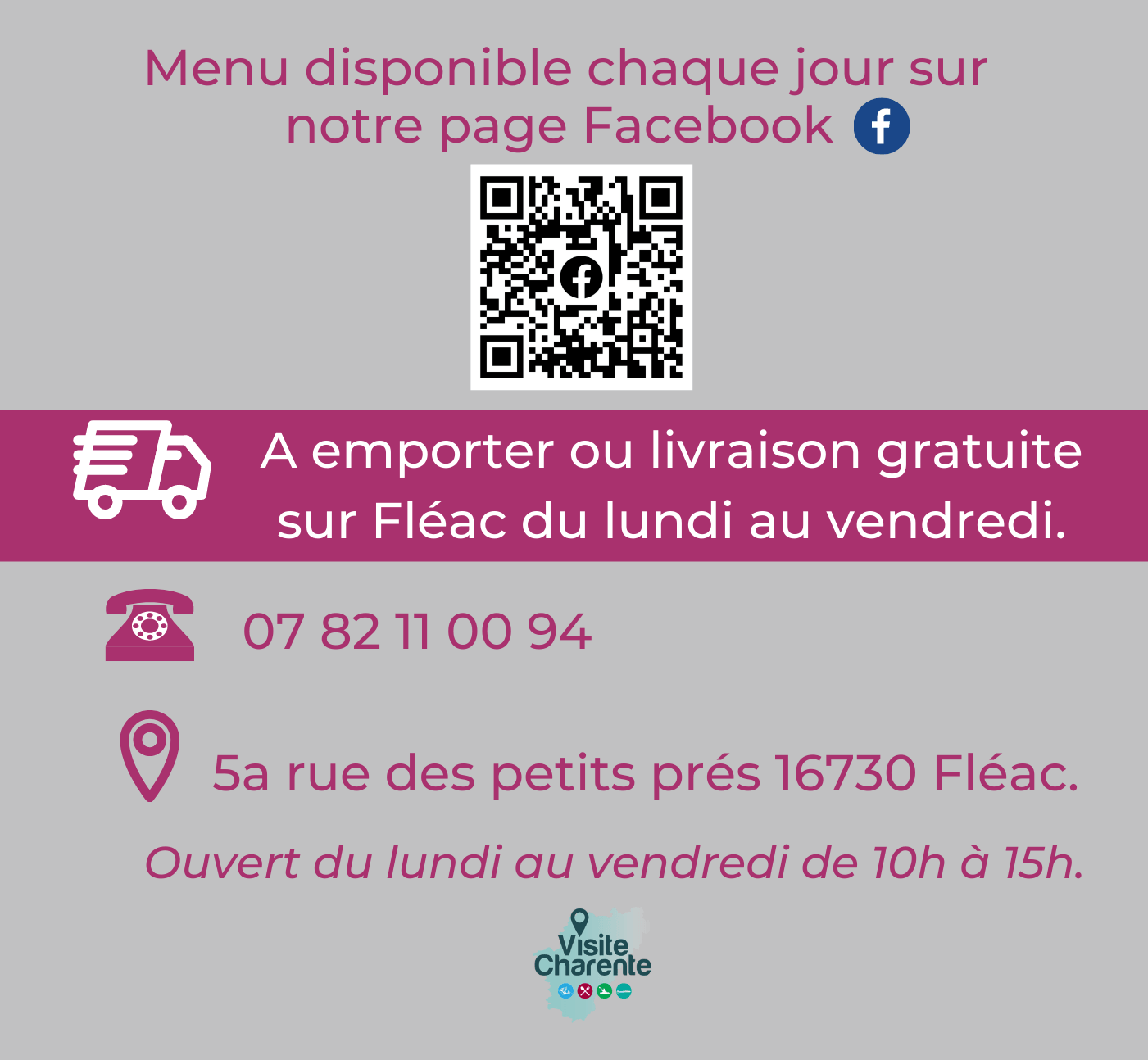 Abonnez-vous à notre page Facebook pour connaître le menu du jour.